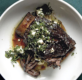 Braised Beef Short Ribs with Salsa Verde and Feta