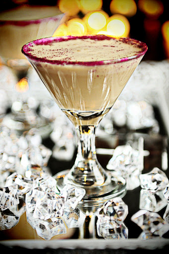 Place all ingredients into a blender. Blend until smooth. Pour into mini martini glasses. If desired, dust rim with edible glitter (found at most baking supply stores).
