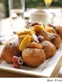 5. Serve the fritters on the warmed platter, dusted generously with confectioners’ sugar.