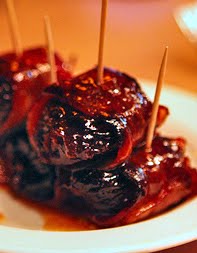 • Dates with dark chocolate, jalapeño and almonds wrapped bacon.