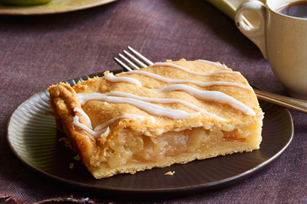SPRAY 15x10x1-inch pan with cooking spray; invert over rolled-out dough. Flip dough and pan together. (Pan will be on bottom.) Remove second waxed paper sheet; gently press dough onto bottom and up side of pan. Toss apples with remaining flour, granulated sugar and cinnamon; spread onto bottom of crust.