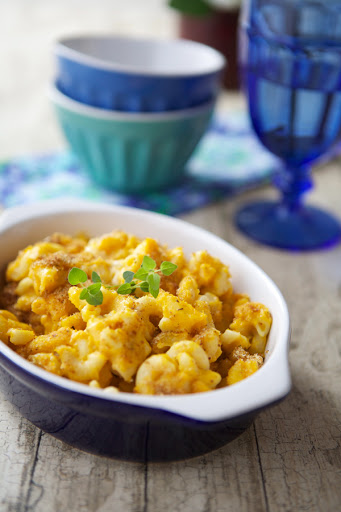Turn heat off and add in cheese. Whisk well until cheese is completely melted. Add macaroni back in and transfer to a casserole dish. If using fresh chopped thyme, add now. Top with bread crumbs. Place macaroni under broiler for a few minutes until bread crumbs are browned.
