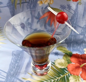Fill a mixing glass halfway with ice cubes. Combine all the ingredients in it and stir well. Strain the mixture into a cocktail glass and garnish with a maraschino cherry.