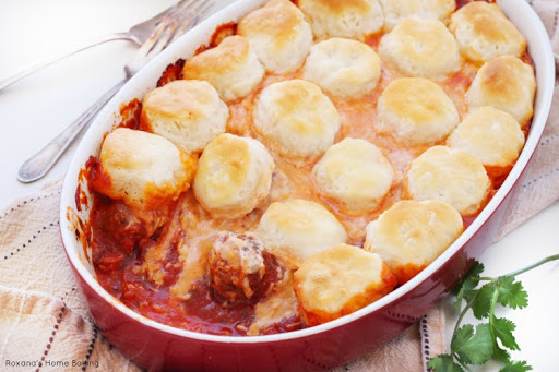 13.Bake in preheated oven for 30 minutes or until the casserole is bubbly on the edges and the biscuits are golden brown.