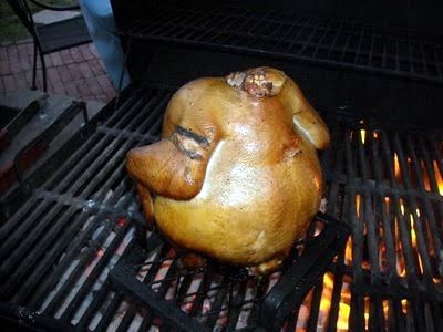 Wash and drain the chicken and pat dry. Season the chicken inside and out with the Seasoning Salt and House Seasoning. Refrigerate until ready to cook. Prepare the charcoal grill. When the coals are hot and glowing, carefully push them over to the sides of the grill, leaving an open space in the middle of the grill. Open the can of beer and pour off approximately 1/4 cup. Try and open the can as much as possible or completely using a can opener or knife (be careful). Insert the sprig of rosemary to the can, add some more of Paula's house seasoning into the can then place the beer can, keeping it upright, into the rear cavity of the chicken. ( I used a beer can chicken holder) Carefully place the chicken, standing up on the beer can, in the center of the grill, making sure not to spill the beer. Cover the grill and cook the chicken for approximately 1 hour, rotating the chicken as necessary. The chicken is done when the juice runs clear when pierced with a fork. Carefully remove the beer can from the chicken using mitts and discard the can. Cut the chicken into halves or quarters.
