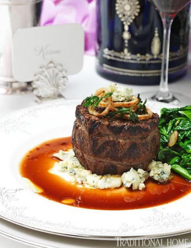 The classic combination of Stilton cheese and port becomes the accompaniment for this impressive main course. Ask the butcher to tie the steaks so they are 2 inches thick.