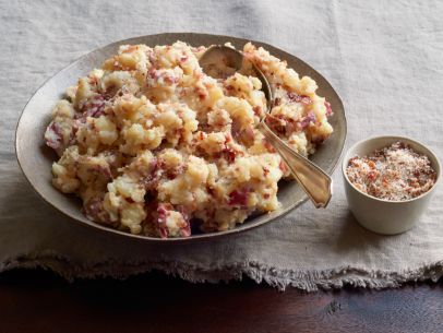 Combine the butter with the milk in the same pot and let melt over medium-low heat. Return the potatoes to the pot and mash them with a potato masher or fork. Add 1 tablespoon of the prepared bacon salt and stir to combine; transfer the potatoes to a bowl and top with more bacon salt.