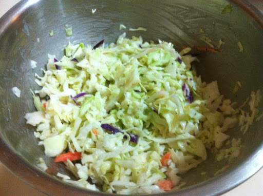Mix sugar, vinegar, and mayonnaise together. Add coleslaw and mix well. Season with pepper and garlic powder to taste. Refrigerate until serving.