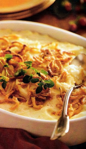 • 2 ) Sprinkle 1 can 2.8 oz French-fried onions over potatoes