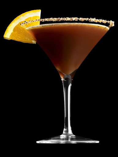 Mix 2 tablespoons each raw sugar and finely chopped dark chocolate on a plate. Combine 2 ounces each chocolate liqueur and vodka, 1 ounce chilled espresso, 1/2 teaspoon fresh orange juice and a strip of orange zest in a cocktail shaker with ice; stir well. Moisten the rim of a chilled martini glass and dip it in the sugar-chocolate mixture. Strain the cocktail into the glass and garnish with an orange wedge