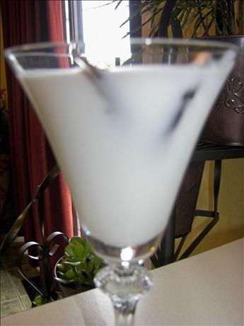 Place all ingredients into a cocktail shaker. Strain into a martini glass and serve with the vanilla bean folded into it. (so both ends peek out).