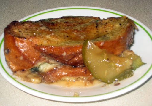Wisk together the eggs, milk, vanilla, salt and cinnamon.