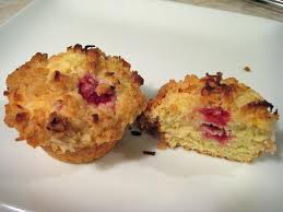 Spoon the batter into each muffin cup, filling 1/3 full. Drop in a few cherries and add batter just to cover and then drop in a few more cherries. Spoon on more batter until the cups are filled level with the rims. Sprinkle each with 1 heaping tablespoon of the Coconut Streusel.