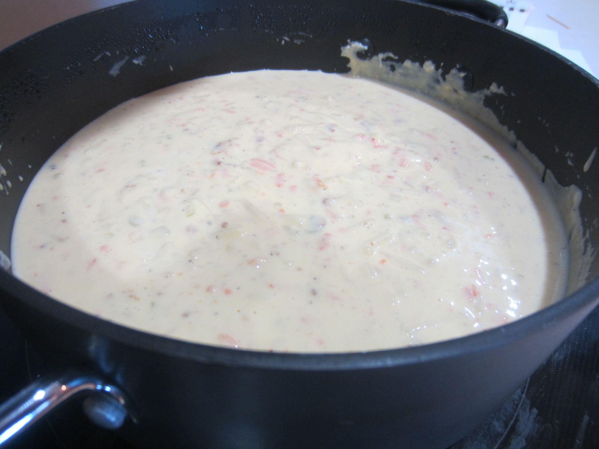Add Velveeta & bacon bits & melt on low until thoroughly combined.