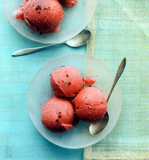 2. Transfer the mixture to an ice cream maker and freeze according to the manufacturer's instructions. Transfer to an airtight container and freeze until firm, about 2 hours. Serve sprinkled with pepper.