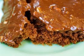 I make this cake, and my recipe is called Texas Sheet Cake. When I remove the cake from the oven, I use the handle of a wooden spoon to poke holes all over it so that the icing can run down into the cake. Make the icing a thinner consistency.