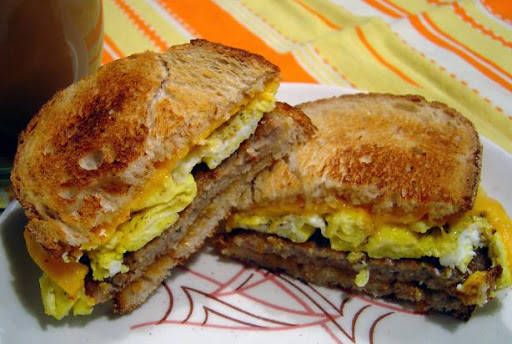 - 2 slices bacon or 1 slice ham or 1 slice Canadian bacon or 1 sausage patty