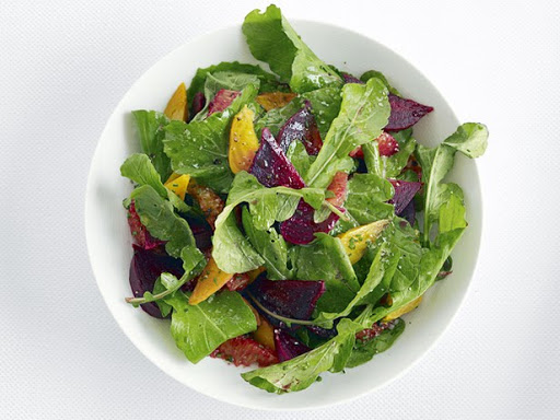 Toss in a serving bowl with olive oil, sherry vinegar, chopped chives or scallions, and salt and pepper. Add arugula and segmented blood oranges and toss.