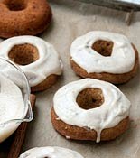 2. Meanwhile, in a food processor, combine the shortening, confectioners' sugar, the remaining 1/2 cup banana, 2 teaspoons vanilla and 1/4 teaspoon cinnamon, and the lemon juice. Glaze the doughnuts with the frosting.