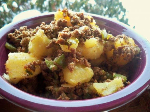 This turned out to be a good tasty supper dish,that was prepared without any real effort. Like Lainey,I decided to add some meat to it,to make it a complete meal,but used turkey mince rather than beef,to keep the fat down. I also threw in a handful of quartered mushrooms,and a good amount of garlic powder and chilli flakes,and seasoned it very well too. This was a good midweek meal,and went well with a fried egg (runny yolk of course!!) thrown on the top.The egg yolk running down into the potatoes was just great. The only downside of this,was that I would have prefered the potatoes to have crisped up a little around the edges,so next time I may well fry them off a little first before introducing the other components.