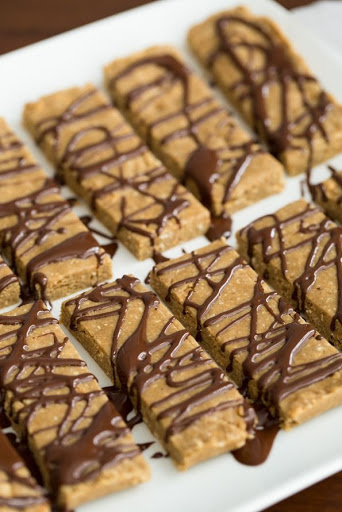 After freezing the bars for about 5-10 minutes, remove from freezer and slice into bars. Drizzle with melted chocolate and freeze again until set. Store in the freezer for a week or longer in an air-tight freezer bag or container.
