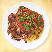 - 3 Tbsp roasted red tomatoes (Mediterranean Bar), thinly sliced