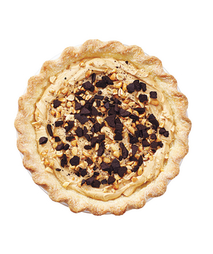 Spread mixture into the piecrust and top with peanuts and chocolate cookies. Chill until firm, 4 to 5 hours.