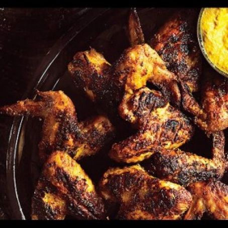 Grill chicken wings, turning every 5 minutes and basting occasionally with marinade in small bowl, until fat is rendered and skin is nicely charred in spots, 30-35 minutes. (The key here is to turn the wings often so the skin doesn't burn.)