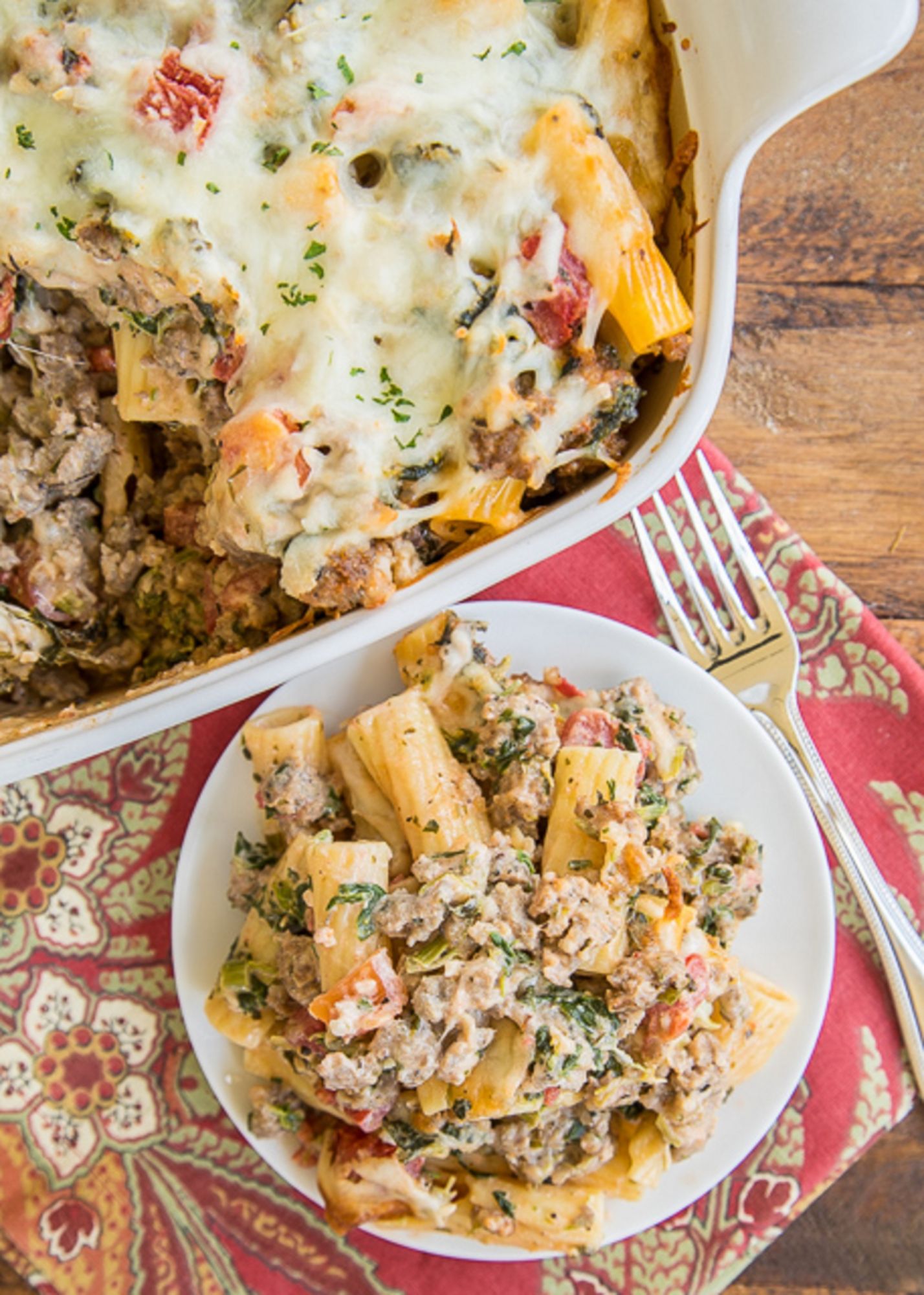 Cheesy Italian Sausage and Spinach Pasta Bake