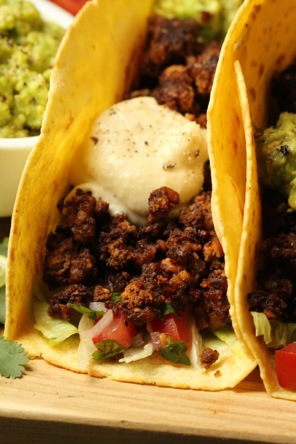 *If you want this vegan taco meat to be entirely gluten-free then use a gluten-free soy sauce or switch for tamari. If you use a regular (not dark) soy sauce, the color of the taco meat will be much lighter.