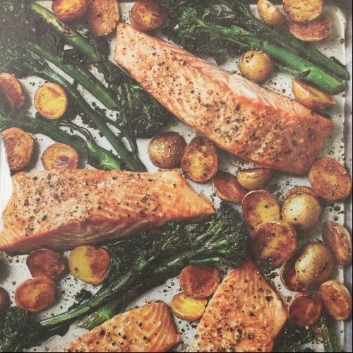 Add salmon to baking sheet and roast until potatoes are tender, 5 more minutes.