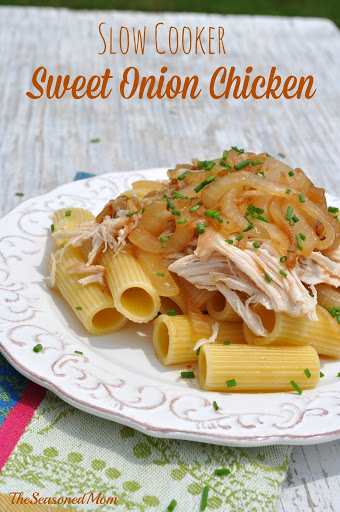 Place sliced onions on the bottom of the slow cooker. Top with the chicken.