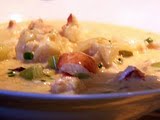 Remove the meat from the shells of the lobsters. Cut the meat into large cubes and place them in a bowl. Cover with plastic wrap and refrigerate. Reserve the shells and all the juices that collect. Cut the corn kernels from the cobs and set aside, reserving the cobs separately.