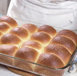 Lightly grease a 9x13-inch baking dish. Turn the dough onto a clean work surface (no need to flour; the dough is soft but not sticky) and gently press to deflate. Using a pastry scraper, divide the dough into 16 equal pieces, each about 2 oz. (use a scale to be sure).