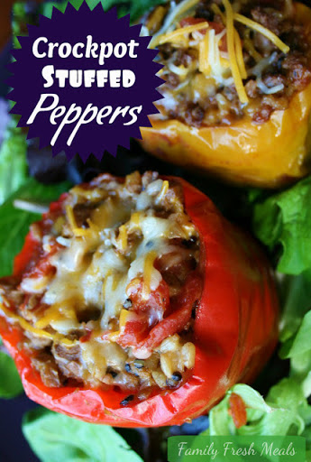 Crockpot Stuffed Bell Peppers (w/ optional vegetarian version)