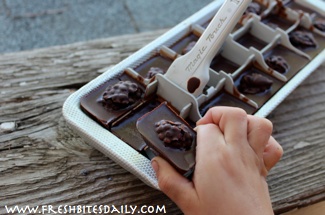 Place the ice cube tray in freezer for about 30 minutes, just enough time for the chocolate mixture to harden.