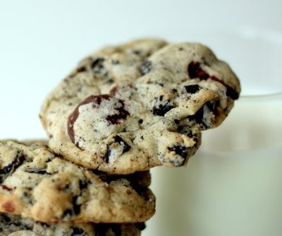 Stir in the chocolate chips by hand using a wooden spoon. Drop cookie dough 1/4 cup at a time onto the prepared cookie sheets. Cookies should be about 3 inches apart.*