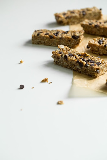 Nutritional info: (based on 14 servings, per bar with chocolate chips): 193 cals, 12.6 grams fat, 16.5 grams carbs, 3.5 grams fibre, 5.8 grams sugar, 5 grams protein.