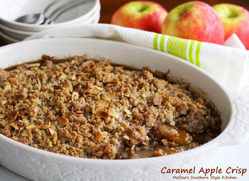 Sprinkle over the caramel apples. Bake for 45 minutes until bubbly and the crisp topping is golden. Rest on the counter for 15 minutes to allow the caramel to thicken. Serve warm with vanilla ice cream. Yield: 8-10 servings