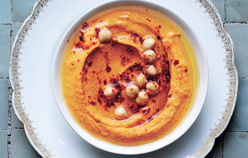 Red pepper paste gives this garlic-free hummus its color and smoky-sweet flavor. Find it in Middle Eastern markets or online to make your new favorite hummus.