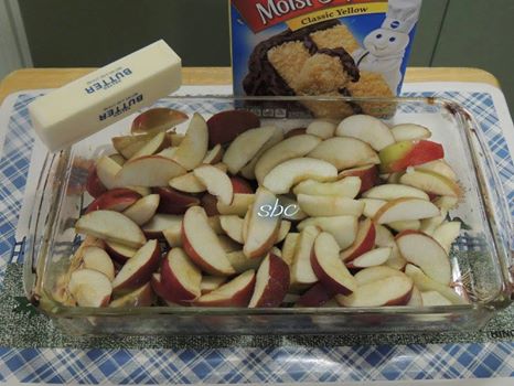 Combine sugar and cinnamon and sprinkle over the cake mix