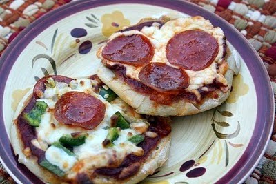 Get a package of the frozen rolls that you thaw out to rise.Pre-heat your oven to 200 degrees. Coat the bottom of your cookie sheet with non-stick cooking spray (a must here) and lay out as many thawed rolls as you want, leaving at least 3 inches apart. Once the oven is heated, shut it off and put the cookie sheet inside. Let it sit for half 30 minutes exactly. After your thirty minutes is up, take the sheet out and flatten the rolls into mini-circles. Put about a tablespoon or so of pizza sauce on each one, then top it with whatever you want. Bake them at 350 for about 12 -18 minutes.