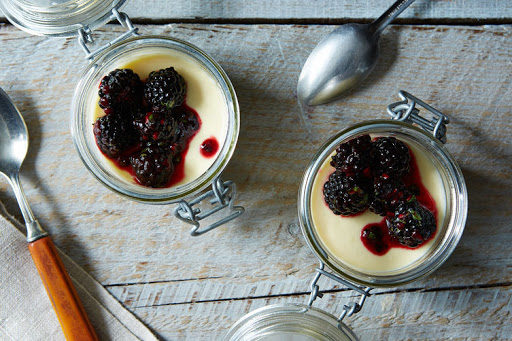 Crème Fraîche Panna Cotta with Fresh Berries and Herbs