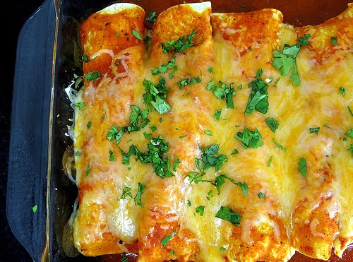 Red Chile Enchiladas with Chicken and Melted Cheese