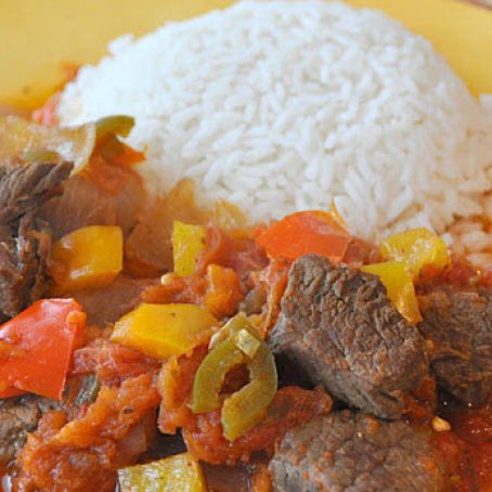 Trim beef steaks and cut in chunks about 1-1/2 inches. Brown in skillet and drain on paper towel.