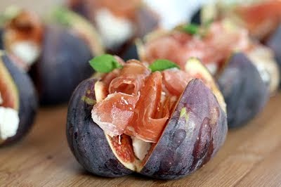 Cut the cheese into chunks, divide between the figs. Place a piece of ham onto each fig.