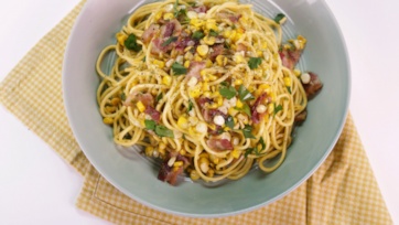 Spaghetti With Corn, Bacon and Jalapeño