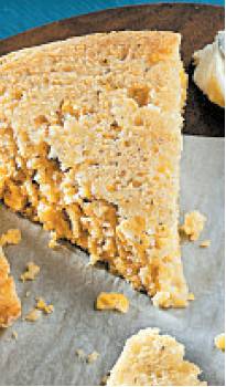 5 Serve: Turn out cornbread onto a cutting board, browned bottom up. Slice into wedges and munch.