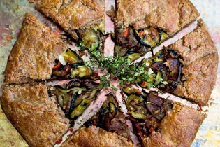 Heat oven to 425 degrees. Spread out eggplant, zucchini and tomatoes in one layer on three separate sheet pans or cookie sheets. Drizzle generously with oil and season with salt and pepper. Roast vegetables, tossing zucchini and eggplant occasionally, 35 to 40 minutes. Eggplant and tomatoes will be golden at the edges; zucchini will be tender. Don’t let the vegetables get too dark because they will continue to brown in the tart. Transfer vegetables to a bowl (you want to have about 3 cups of them) and toss with chili peppers.