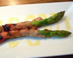 - 12 stalks each white and green asparagus, ends trimmed (24 total)